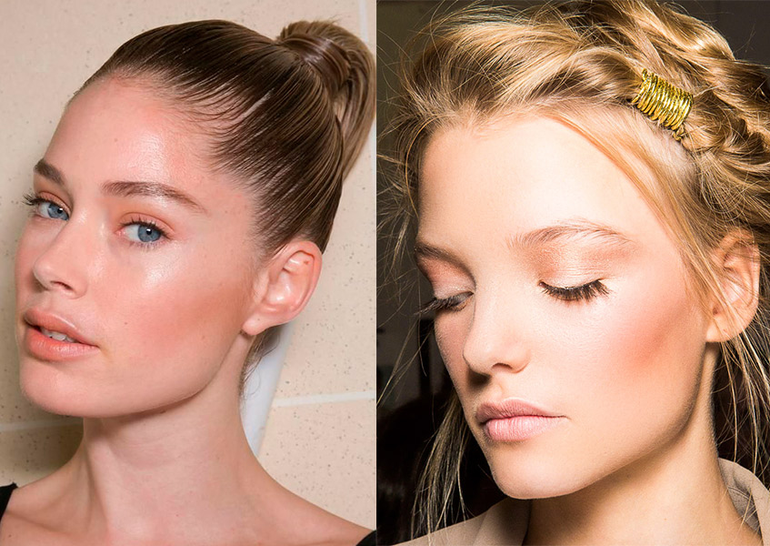 Главный тренд весны и лета – сияющая, слегка влажная кожа. Она может быть как основной для арт-макияжа, так и выступать сольно, делая образ сильным и немного жестким.