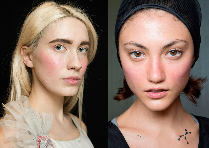 В этом сезоне мода на детскость. Поэтому смело раскрашивай щеки бледно-розовыми румянами. Наноси их только на выступающие части скул.