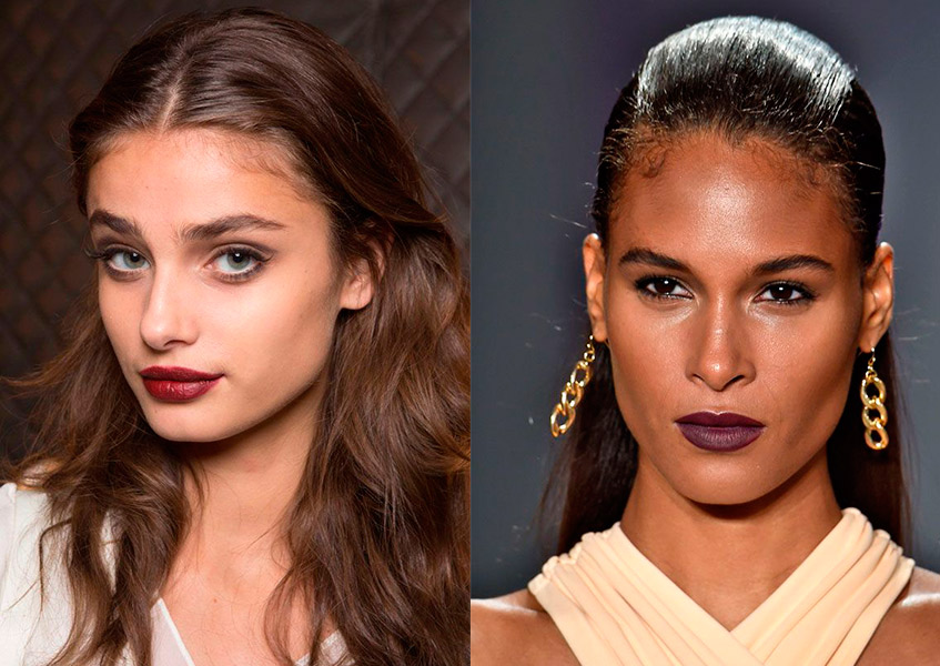 В тренде также темно-бордовые и алые оттенки помады. Чем темнее и насыщеннее, тем лучше! Бери в пример вампирские образы из кино.