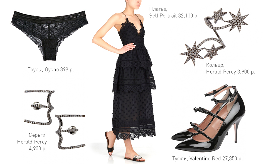 Все платья Self Portrait прекрасны, но это нравится мне больше всего. Смело бери к нему туфли Valentino на ремешках и украшения Herald Percy. И никогда не забывай: черный – беспроигрышный вариант!
