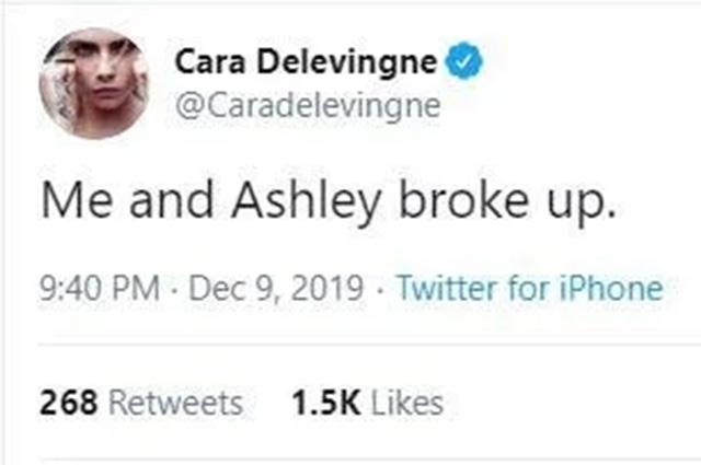 Кажется, Кара Делевинь (27) и Эшли Бенсон (29) расстались. По крайней мере, об этом завила сама Кара в своем Twitter.