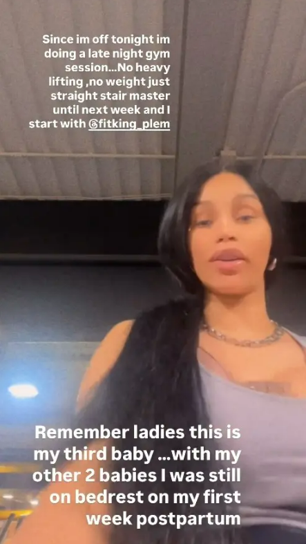 Карди Би отправилась на тренировку через неделю после рождения третьего ребенка