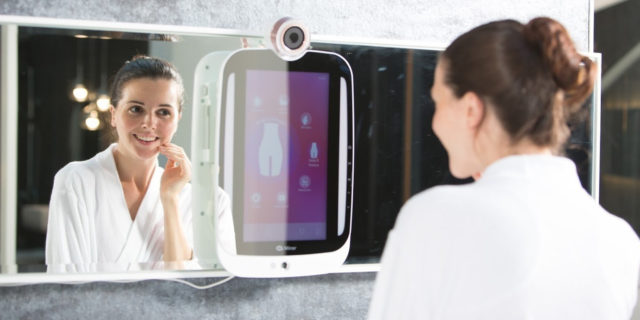 Заменит косметолога и визажиста! В зеркальный планшет встроена камера, которая фотографирует лицо, анализирует десять параметров состояния кожи, обозначает морщины, темные круги, неровности, расширенные поры и черные точки. Зеркало также отслеживает изменение состояния и дает рекомендации по уходу и подходящему макияжу – в систему встроены больше 10 000 средств.