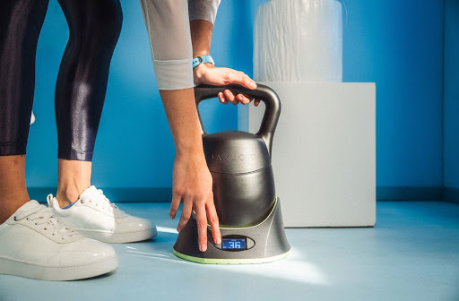 Универсальная гиря для домашних тренировок, которая меняет вес от 5,5 до 19 килограммов всего за несколько секунд, фиксируя и снимая утяжеленные пластины в зависимости от показателя на экране станции. Настраивать гирю можно через приложение на телефоне – там же ведется история тренировок с указанием подходов, упражнений и времени отдыха.