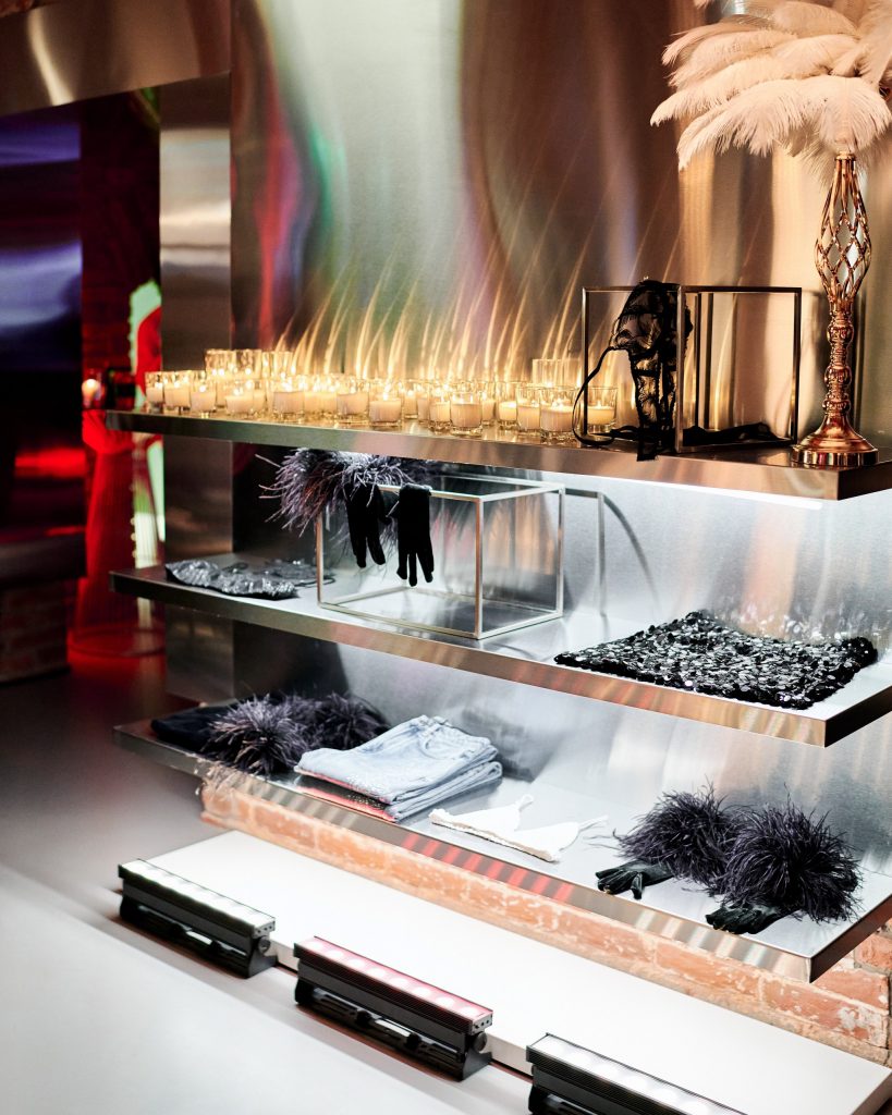 Правда, в день открытия историческая основа флагмана неминуемо звучала ярче, поскольку дух Венеции, где снимали новогоднюю коллекцию Carnival, даже в приглушенном свете пространства был подчеркнут деталями. Перья, маскарадные маски, нижнее белье, будто сброшенное в будуаре после Карнавальной ночи, – все это стало частью таинственной истории под аккомпанемент виртуоза из Санкт-Петербурга, играющего композиции на электроскрипке.