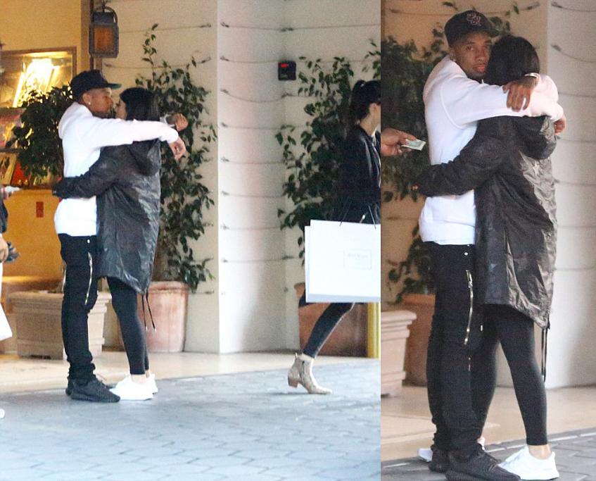 22 октября пару застали у выхода из отеля в Беверли-Хиллз, где они ждали, когда им подадут машину. Все это время Кайли, которая была одета в черное пальто, леггенсы и белые кеды, не могла оторваться от своего возлюбленного, постоянно обнимая его.