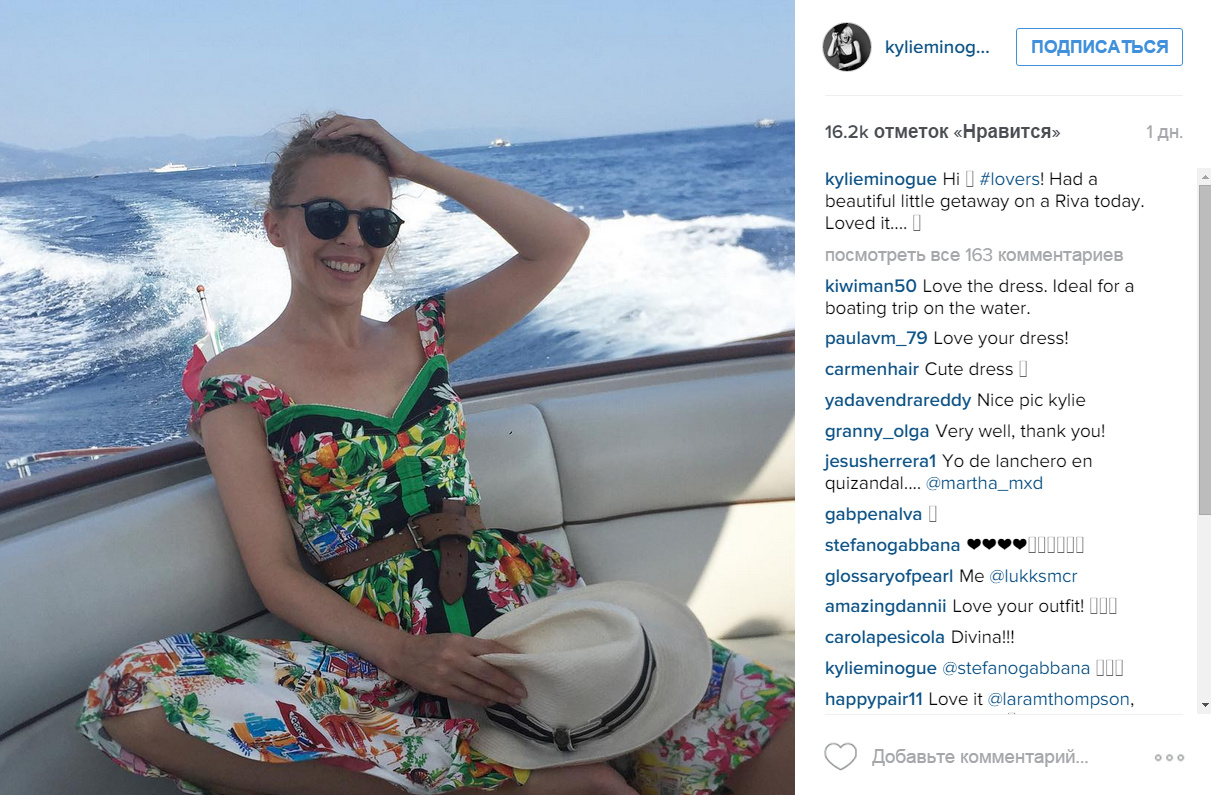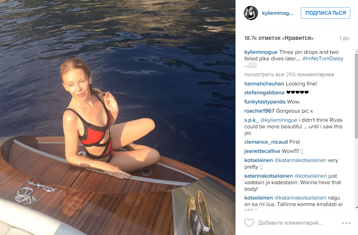 Сейчас Кайли проводит время в Портофино с друзьями, и не перестает демонстрировать свои пляжные образы. Больше всего нам понравился стильный купальник Agent Provocateur, в котором Миноуг появилась на яхте.