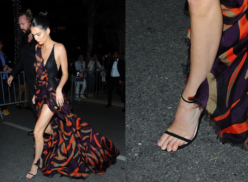 Однако не все в этот день в Кендалл было идеально. Великолепный образ красавицы дополняли босоножки на высоком каблуке от Stuart Weitzman. И все бы ничего, но, выбирая обувь, Кендалл явно промахнулась с размером, из-за чего произошел неприятный инцидент — пальцы телезвезды сильно торчали из туфель.