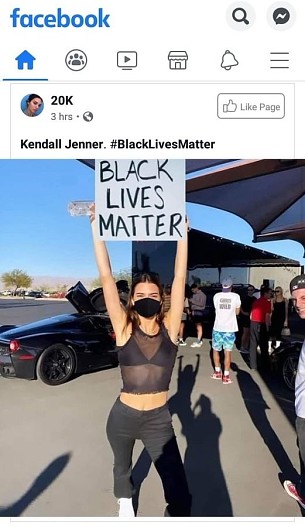 Так, недавно на фан-странице Кендалл Дженнер (24) в Facebook появилось фото модели с плакатом Black Lives Matter.