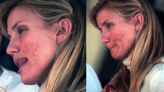 В юности звезда долго боролась с высыпаниями. Да и сейчас на ее лице можно заметить шрамы, неровности и постакне. Их звезда умело маскирует с помощью косметики.