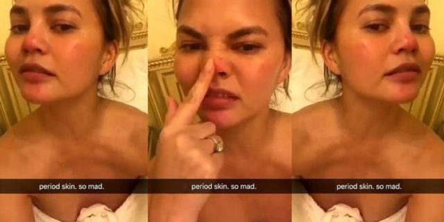 Два года назад Крисси выложила в Snapchat видео без обработки, на котором заметны мелкие несовершенства на ее коже: прыщи на носу, щеках и подбородке. «Вот так выглядит моя кожа в данный момент. Что поделать, такой период», – призналась модель. Но после фото со вторым подбородком и полосками от прыщей мы уже ничему не удивляемся.
