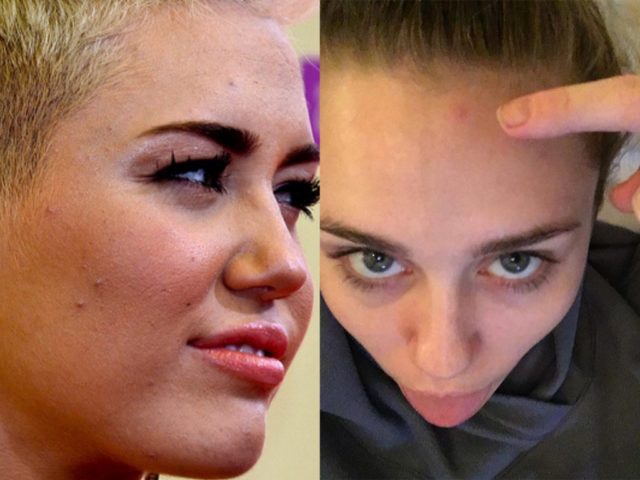 Проблемы с кожей у Майли начались в школе. Тогда звезда стеснялась этого и замазывала прыщи толстым слоем тонального. Сейчас Сайрус вообще не парится и без проблем постит «неидеальные» селфи в Instagram.