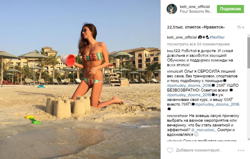 Солистка группы «А-Студио» Кети Топурия (29), которая стала мамой чуть менее года назад, на днях отправилась отдыхать в Дубай. И, конечно, она не могла не показать фанатам, как прекрасно она выглядит в купальнике.