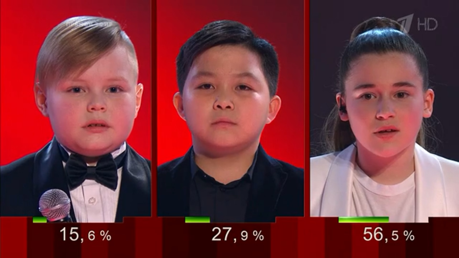 А «Первый канал» уже произвел проверку результатов голосования. Микелла Абрамова набрала 145,5 тысячи голосов, из них 109 тысяч получены смс-голосованием, а еще 36,5 тысячи — по телефону. Оказавшийся на втором месте по итогам голосования Ержан Максим получил 64,8 тысячи голосов: 62,6 тысячи смс и около двух тысяч звонков. Занявший третье место Валерий Кузаков набрал 36,1 тысячи голосов.