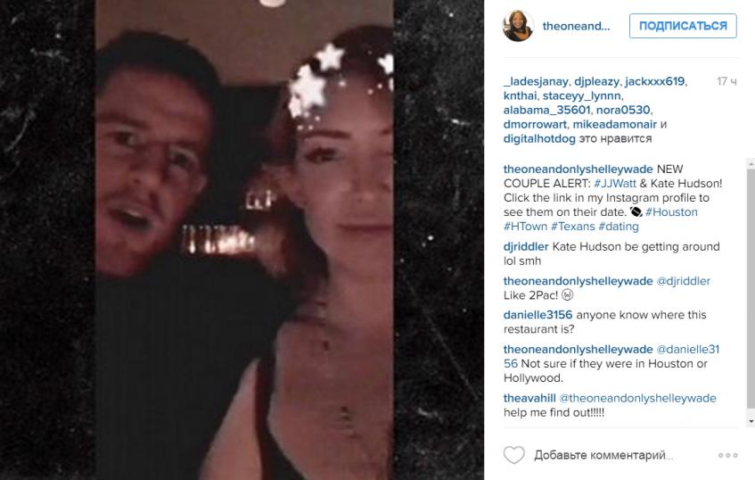 Очередным избранником актрисы стал 27-летний игрок в американский футбол Джейджей Уотт. Именно о свидании с ним Кейт решила рассказать своим поклонникам через приложение Snapchat в минувший понедельник.