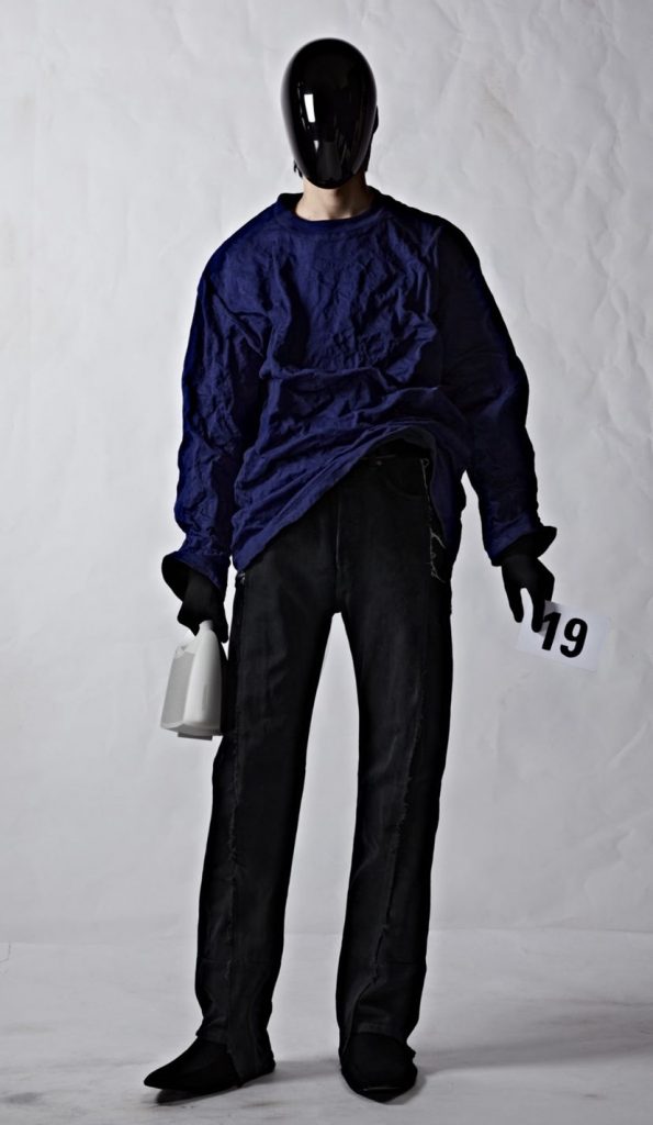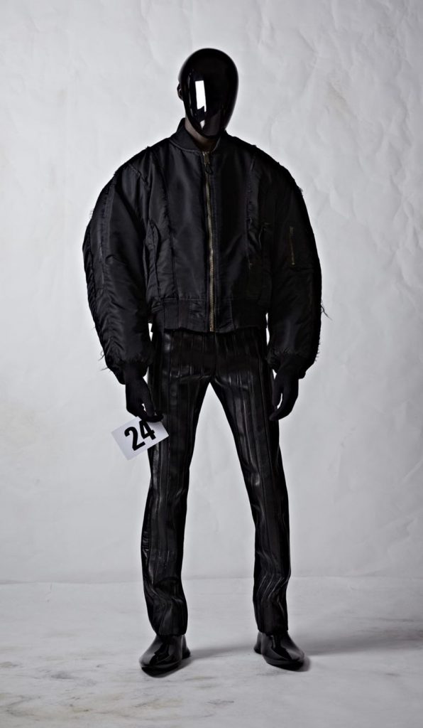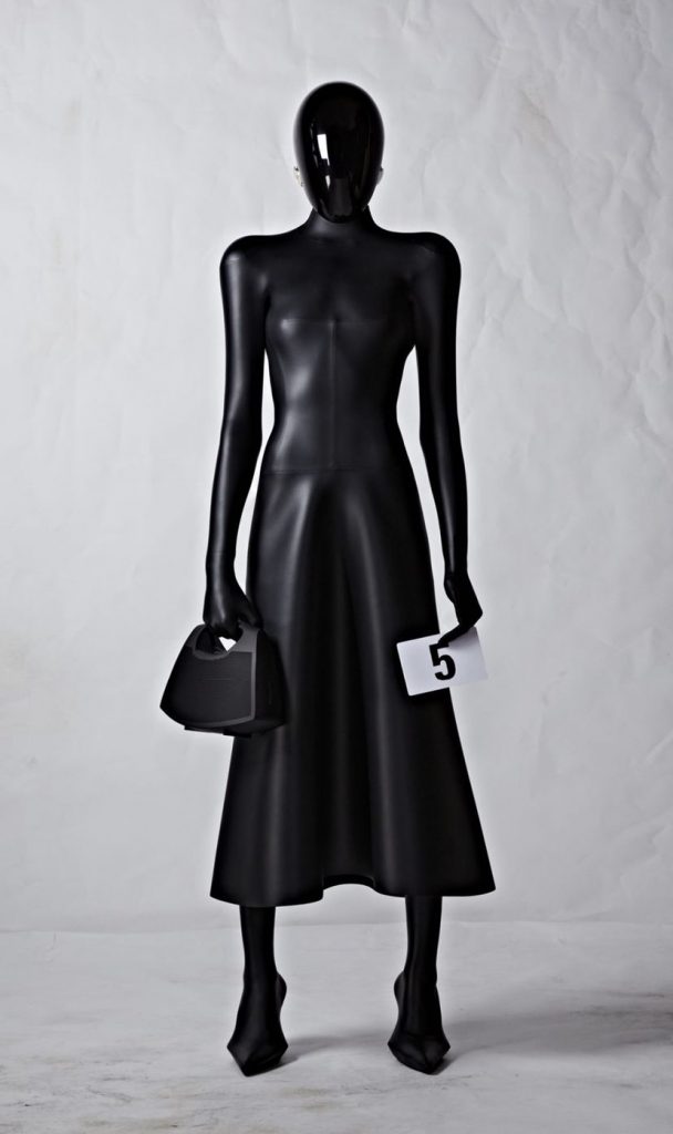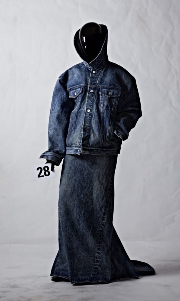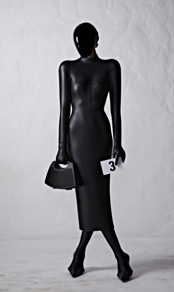 51-ая кутюрная коллекция началась с анонимности (на которой Демна так часто делает акцент) – модели появлялись на подиуме в сварочных масках из коллаборации с Mercedes и костюмах, казалось, сделанных из резины. После выяснилось, что это вовсе не резина, а японский неопрен на основе известняка, разработанный в 1958 году специально для Кристобаля Баленсиага.