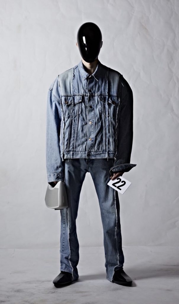 Гвасалия не только работает с внушительным архивом, но и творит собственную историю, разбавляя кутюр денимом (вещи из этого материалы мы видели и в прошлой коллекции), худи, спортивными куртками Helly Hancen и даже сумками-динамиками.