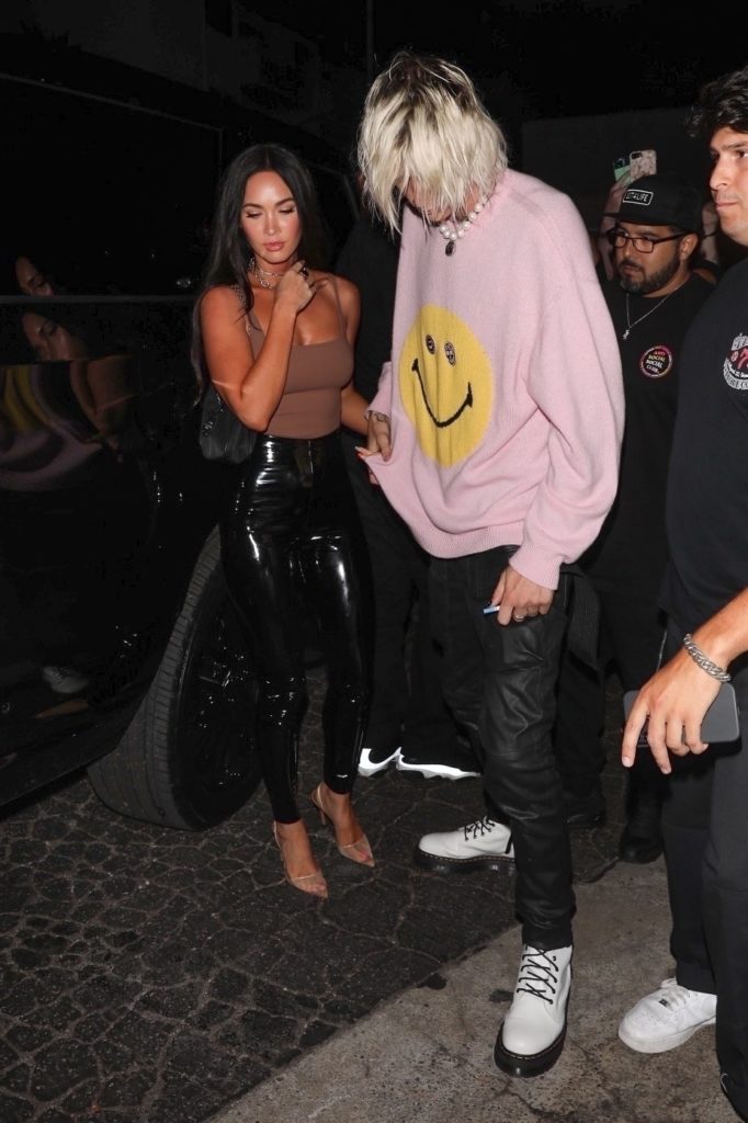 На днях папарацци заметили Меган на концерте Yungblud в Лос-Анджелесе. Для выхода она выбрала бежевый топ и латексные леггинсы, дополнив образ минималистичными боссоножками с острым мысом.