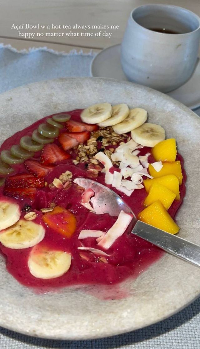 Сейчас звезда занимается спортом и придерживается правильного питания. И это понятно, ведь в противном случае к ней снова вернутся сброшенные килограммы. Накануне Ким показала поклонникам свой полезный завтрак. День звезды начинается с фруктового смузи-боула с ягодами асаи и чашки горячего чая.