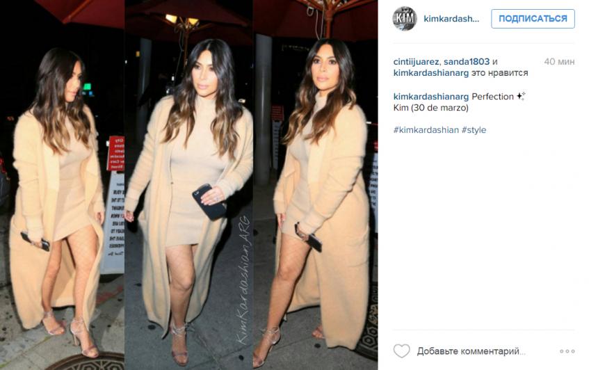 И они того стоят! Вездесущие фотографы засняли потрясающие ноги Ким, подчеркнутые коротким обтягивающим бежевым платьем и туфлями на высоком каблуке. Кроме того, звезда решила дополнить свой образ светлой вязаной накидкой в тон платья.