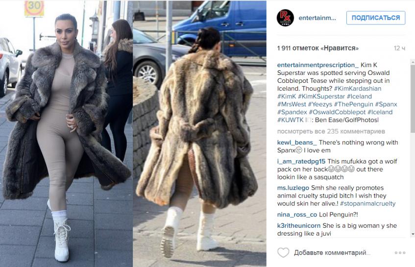 Сейчас Ким находится в Исландии, где даже в середине апреля сохраняется весьма прохладная погода. Но даже это обстоятельство не помешало звезде шоу «Семейство Кардашьян» появиться на улице почти голой – точнее надеть нижнее белье в качестве основной одежды.