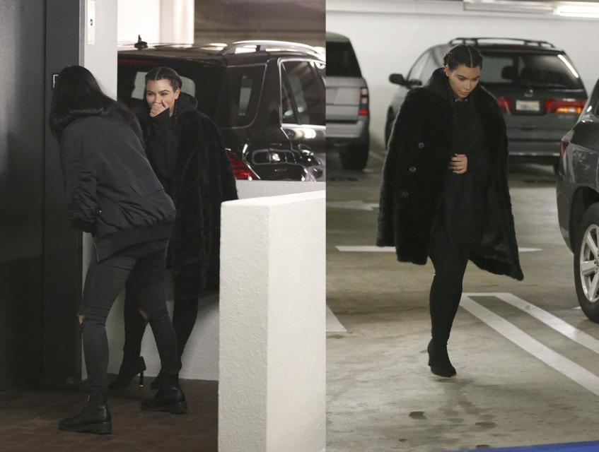 5 декабря звезду шоу «Семейство Кардашьян» впервые застали вне дома. Произошло это на подземной парковке одной из клиник Беверли-Хилз, куда она приехала в компании своей подруги. Ким, которая вышла из машины в черной шубе, брюках и кофте, явно находилась в приподнятом настроении и весело шутила со спутницей.