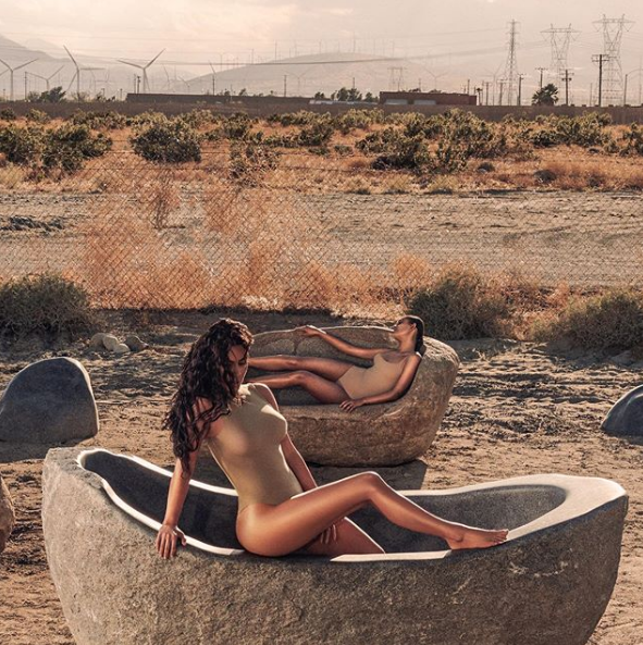 На днях в официальном аккаунте бренда Ким Кардашьян (38) появились очень горячие снимки звезды. На них она вместе с другими девушками позирует в бежевых купальниках.
