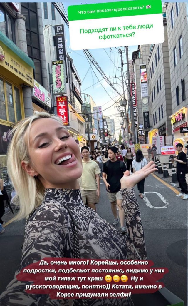 Во время общения с фанатами Клава призналась, что пользуется популярностью среди жителей Сеула. Оказывается, они узнают девушку на улицах. «Корейцы, особенно подростки, подбегают постоянно, видимо, мой типаж тут краш у них. Ну и русскоговорящие, понятно! Кстати, именно в Корее придумали селфи!», — ответила Кока поклоннику.