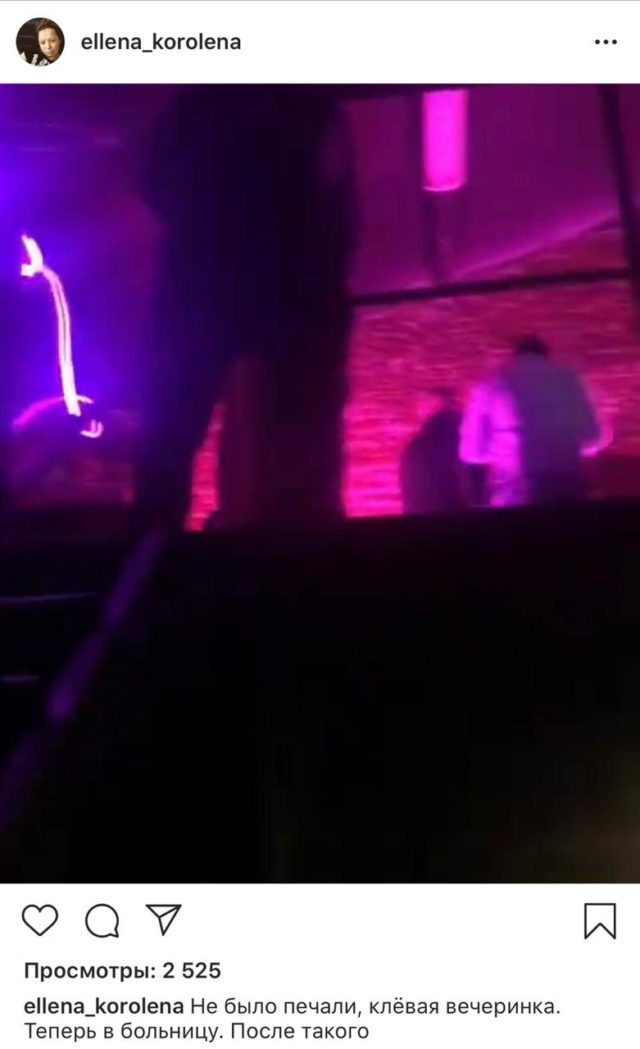 По словам Королевой, она пришла на презентацию песни одного знакомого рэпера. Елена поздравила его с премьерой, обняла и по-дружески поцеловала, однако такой приятельский жест не понравился избраннице музыканта моделе Ларе Фрост, после чего и завязалась драка.