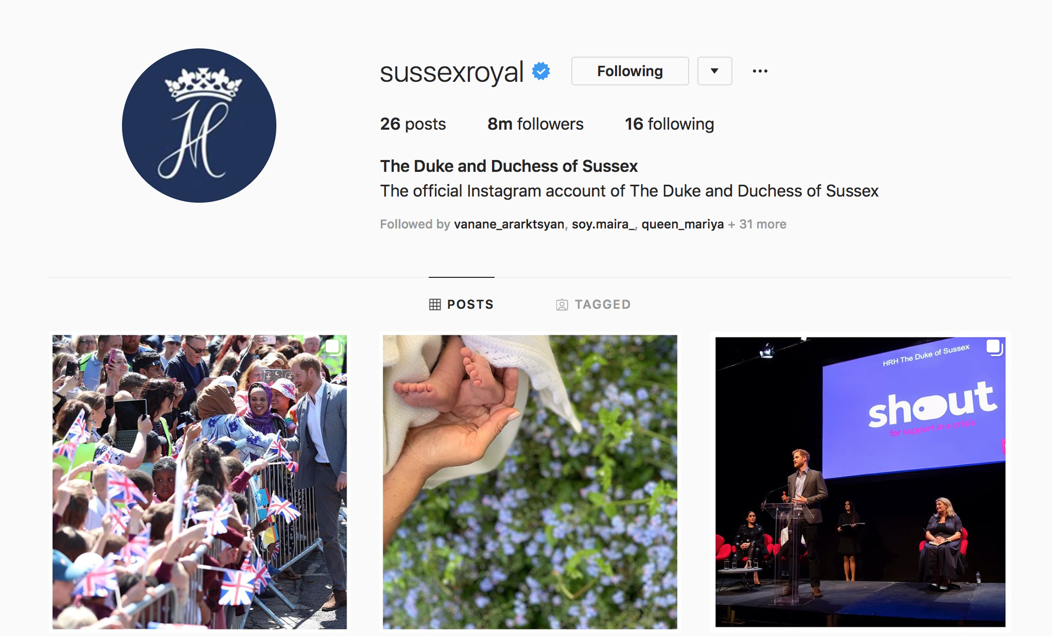 Пост о рождении сына Меган и Гарри стал самым «лайкаемым» из всех публикаций королевской семьи: за два дня он набрал 2 млн 835 тысяч «нравится». И так они побили мировой рекорд: 1 миллион лайков за 5 часов. Но это еще не все: меньше, чем за 2 месяца со дня основания аккаунта у Меган и Гарри уже больше 8 миллионов подписчиков.
