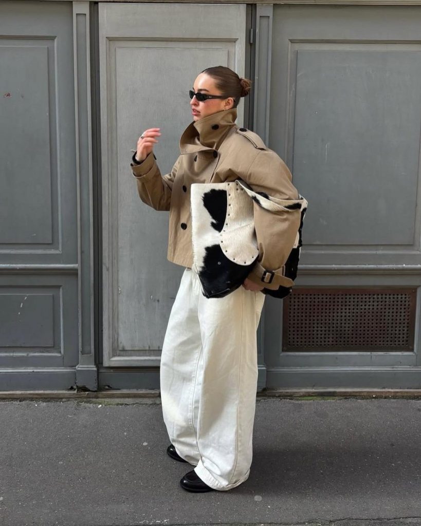 Предпосылки этого тренда были уже давно, как минимум после выхода альбома Бейонсе Cowboy Carter. Но главным трендсеттером, по нашему мнению, стала новоиспеченная звезда родео – Белла Хадид, которая в своей бохо эре сделала коровий принт одним из самых желанных. Не стоит забывать и про модные дома, которые стали использовать этот принт в своих коллекциях. Например, брюки и куртки с коровьим принтом у Kenzo, шапки, джемперы и пальто у Prada и шуба у Bottega Veneta.