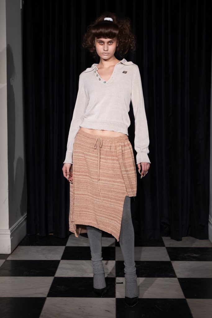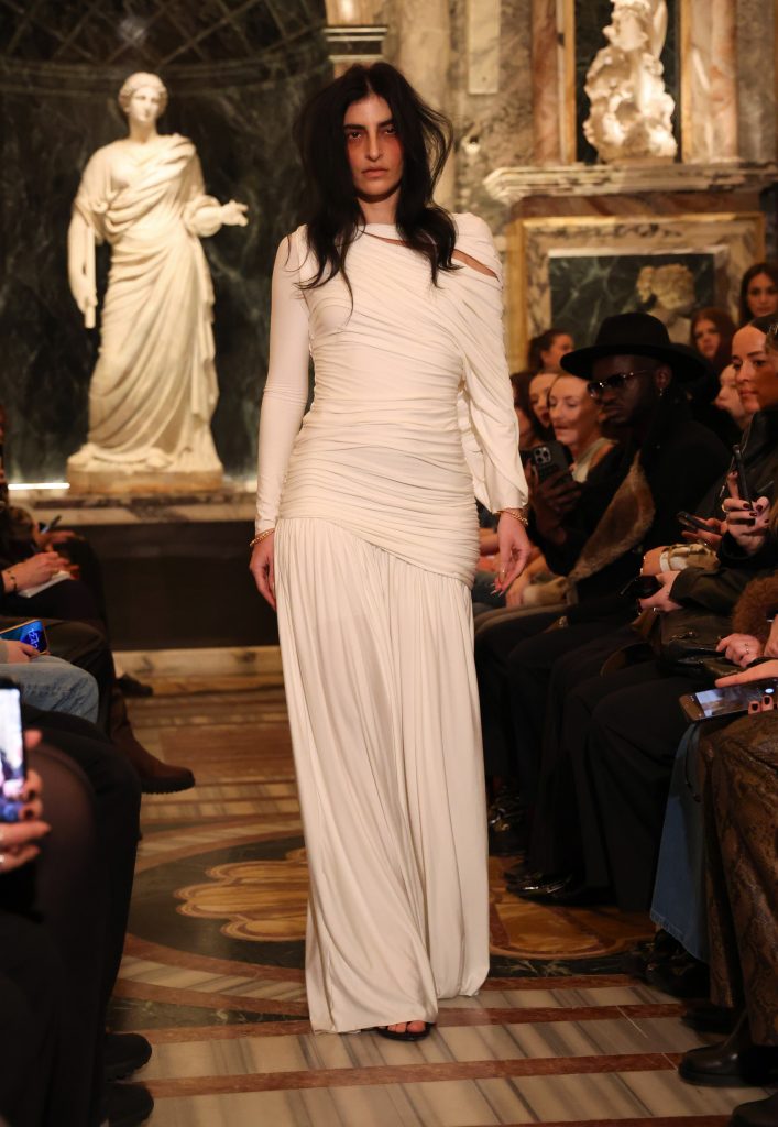 Дизайнеры Di Petsa выбрали другой путь и вдохновились греческим мифом о медузе со змеиной головой, которая могла одним взглядом превратить мужчин в камень. Стилисты передали эстетику через прически – волосы моделей были похожи на щупальца.