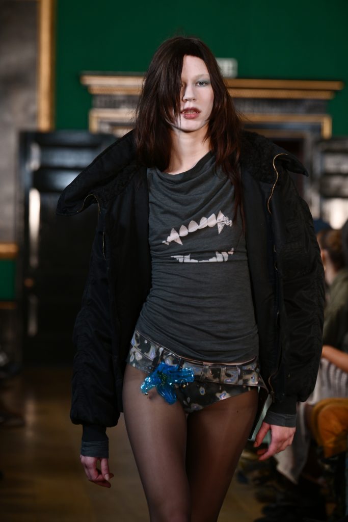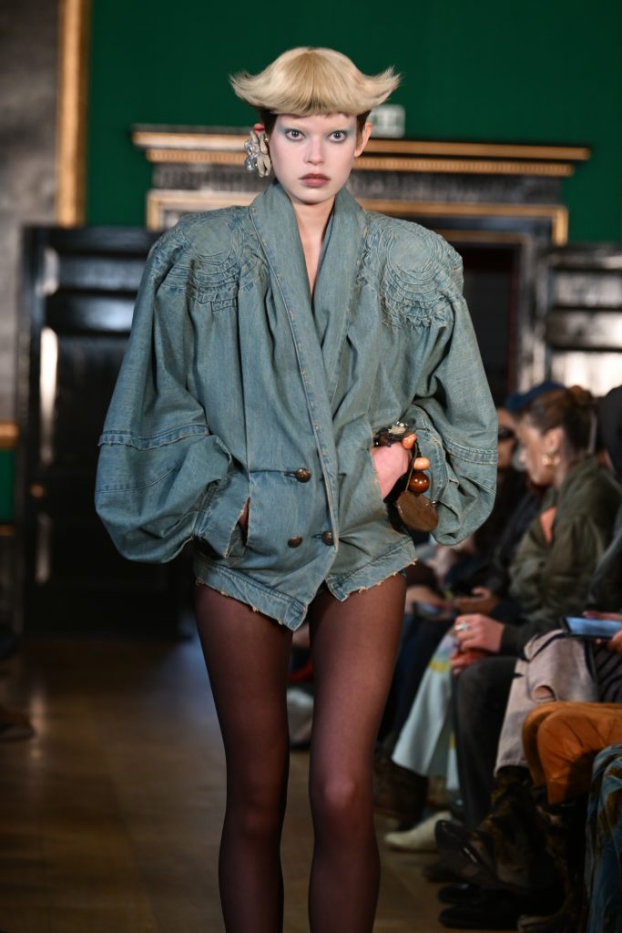 На показе бренда Masha Popova модели дефилировали по подиуму в вампирских образах. У них были синяки под глазами, бледный тон лица, а прически напоминали рога. Похожий стиль был и у коллекции Erdem – красные веки, уставший взгляд и четко очерченные скулы.