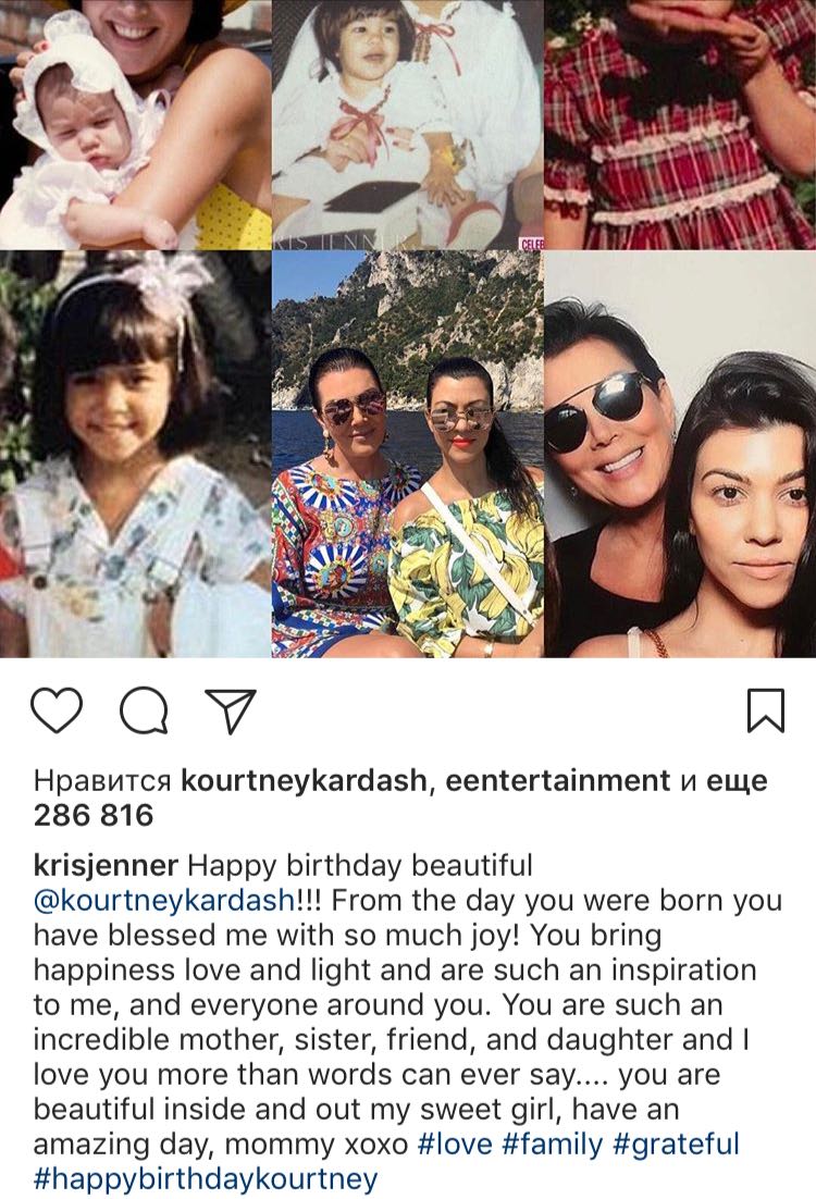 И, конечно же, про любимую дочь не забыла и Крис Дженнер (61): «С Днем Рождения, красотка Кортни! С первого дня твоего рождения ты всегда радовалась жизни! Ты дарила любовь, заботу и свет всем, кто был рядом. Ты прекрасная мать, сестра и дочь, и я люблю тебя так сильно, что не передать словами… ты самая красивая, моя дорогая девочка, пусть у тебя будет прекрасный день! Целую, мама!».