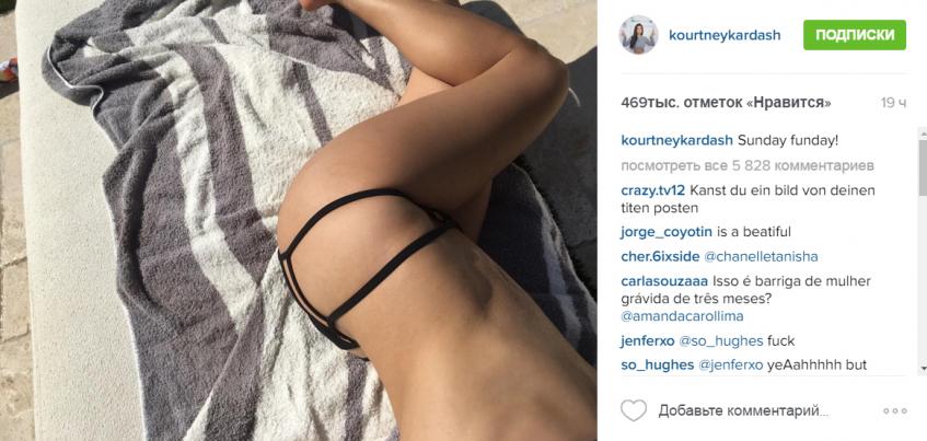 Например, 20 марта девушка опубликовала в своем Instagram фото, на котором она запечатлела свои потрясающие ноги и бедра в тонком черном бикини. «Веселое воскресенье», — озаглавила снимок Кортни, явно намекая на приятное расслабленное времяпрепровождение под теплым весенним солнцем.