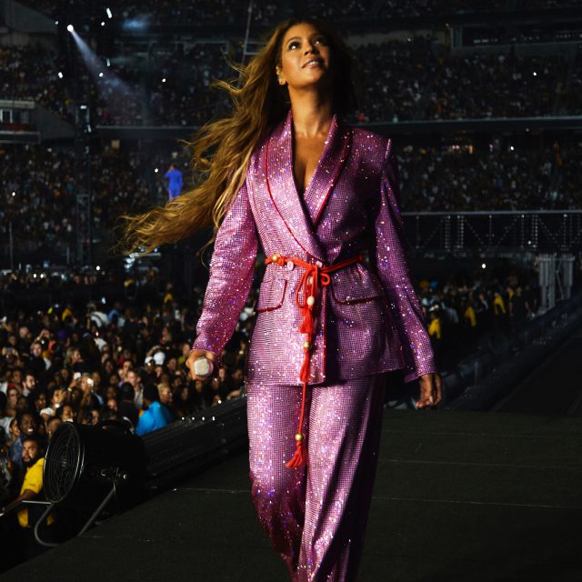 И хотя во время своего тура Бейонсе в основном выбирает Balmain, Givenchy, Versace, на вчерашнем концерте в своем родном городе Хьюстоне певица вышла на сцену в розовом костюме с кристаллами Peter Pilotto. И выглядела она просто отлично!