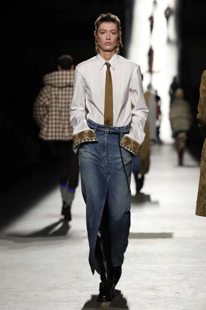 На подиумах этого сезона он мелькает чаще, чем можно было предположить. Галстук, который еще вчера был символом офисной рутины, теперь уверенно заявляет о себе как самостоятельный элемент образа.
