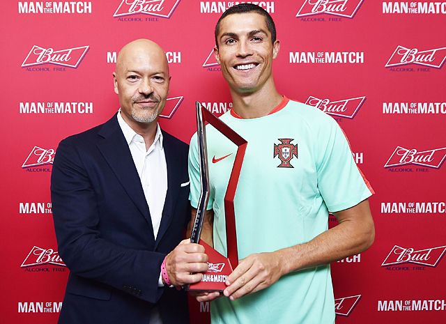 После матча Криштиану получил особую награду из рук режиссера Федора Бондарчука (50)! Болельщики проголосовали на сайте bud-match.com и выбрали Роналду лучшим футболистом этой встречи. Приз от официального спонсора Чемпионата мира по футболу FIFA, BUD Alcohol Free, называется Man of the Match.