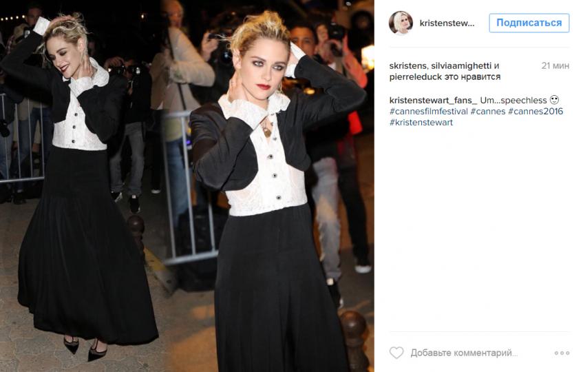 Вечером 12 мая обе они стали гостями ужина, организованного Vanity Fair в честь открытия 69-го кинофестиваля в Каннах. Кристен, которая появилась на красной ковровой дорожке в длинной черной юбке с высоким поясом и коротком пиджаке, надетом поверх белой блузки, была явно в приподнятом настроении. Актриса улыбалась и приветствовала поклонников.