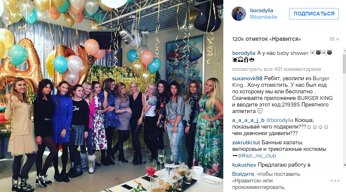 Звезда пригласила всех знаменитых подружек, среди которых были телезвезда Алена Водонаева (33) и бывшая участница шоу «Дом-2» Дарья Пынзарь (29), которая, кстати, тоже беременна. Похоже, Ксения подошла к беременности со всей ответственностью. Вместе с мужем они уже обустроили комнату для малыша.