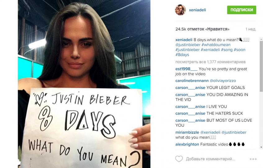 Недавно в сети появился клип Джастина Бибера (21) на песню «What Do You Mean?», главную роль в котором исполнила 25-летняя модель из Молдовы Ксения Дели. Поклонники Джастина тут же начали обсуждать, не связывают ли девушку и певца чувства? Но на днях Ксения расставила все точки над «i».