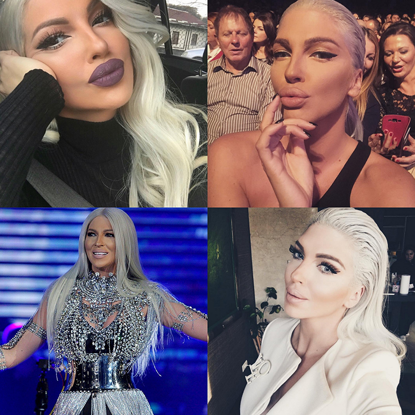 Сербская певица Елена Карлеуша прославилась в Instagram благодаря своим откровенным образам и схожестью с Ким. Певица потратила миллионы долларов на пластические операции, чтобы увеличить себе грудь, ягодицы и губы. А еще она постоянно возмущается, что Ким и Леди Гага копируют ее стиль.