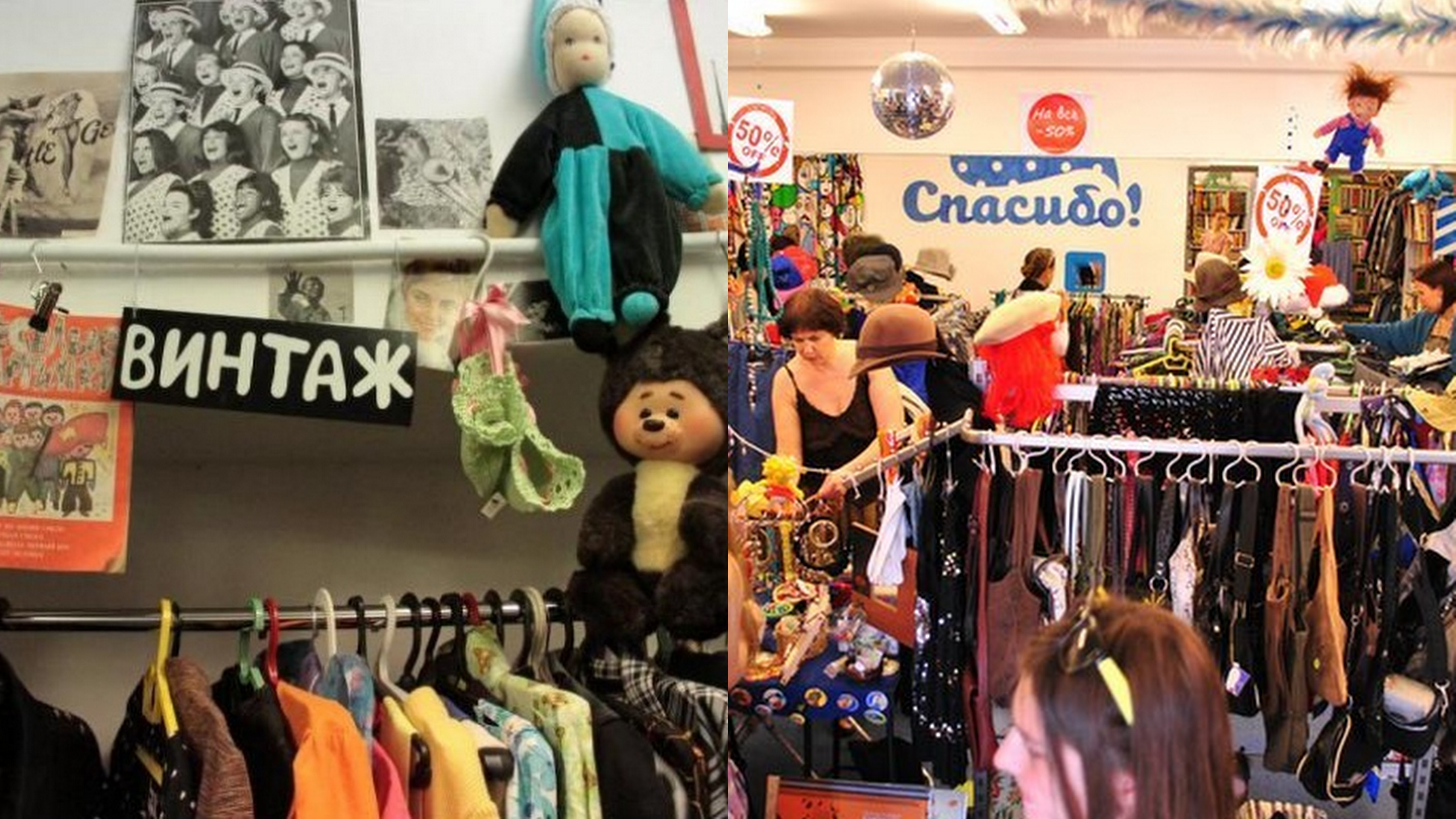 В сети благотворительных магазинов «Спасибо» всегда можно найти что-нибудь интересненькое. Причем как новое, так и с чьего-нибудь плеча. Мне удалось отхватить практически новенькую брендовую джинсовую рубашку за 300 рублей и кожаный плащ за небольшие деньги. А еще там много аксессуаров, книг и мелочей вроде пластинок, старых плакатов и блокнотов.
