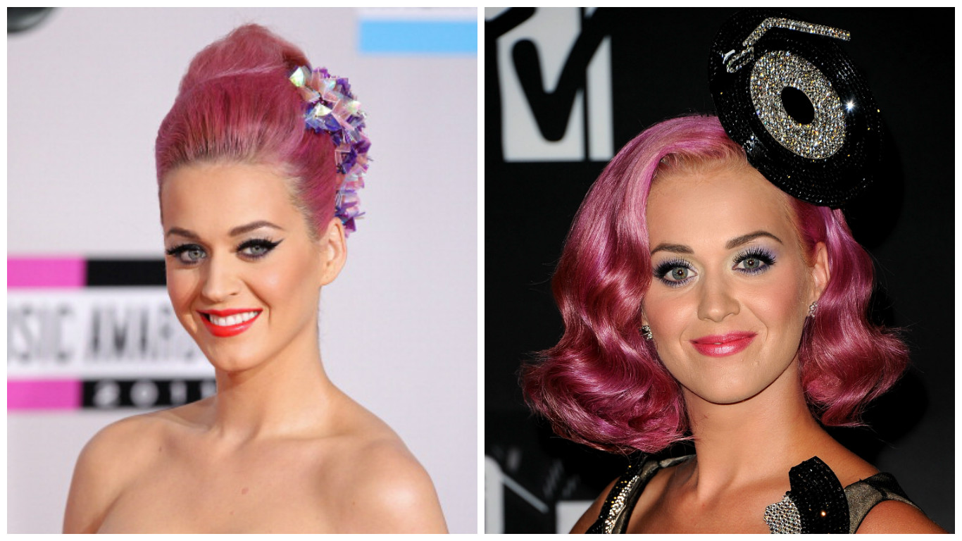 2011 год для Перри стал годом блонда и розовых оттенков. С белокурыми локонами певица впервые пришла на мировую премьеру фильма «Смурфики», которая состоялась в июле. Позже Кэти решилась сделать стрижку боб и обновить оттенок. На этот раз она предпочла омбре: от насыщенного малинового у корней до бледно-розового на концах. Следующий шаг стал еще более смелым – полностью розовые волосы и на этот раз без парика!