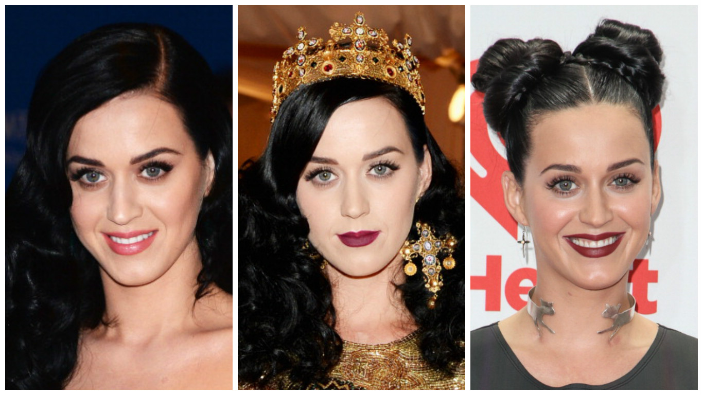 Напомним, что Кэти довольно часто меняет прически. Можно сказать, что кардинальные перемены во внешности впервые произошли в 2010 году, когда певица сделала красные и синие пряди – очень эффектно. Потом Кэти вышла в свет с синими волосами, как у Мальвины, – в таком виде она появилась на красной дорожке церемонии вручения премии MTV Movie Awards – 2010. Конечно, это был парик, но смотрелся он весьма натурально (прямо как у девушек Кардашьян).