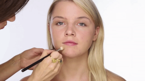 Светлым нарисуй на лбу галочку в центре, осветли центральную часть носа, подбородка, над губой, верхнюю линию скулы, нижнюю линию скулы. Далее возьми второй, более темный консилер и затемни боковые стороны лба (если он широкий), линию у роста волос (если лоб высокий). Затемняй зоны под линией скулы, нижнюю часть подбородка, боковые стенки носа и нижнюю часть его кончика. Затем растушуй в единый тон. Так ты получишь мейк с правильной светокоррекцией.