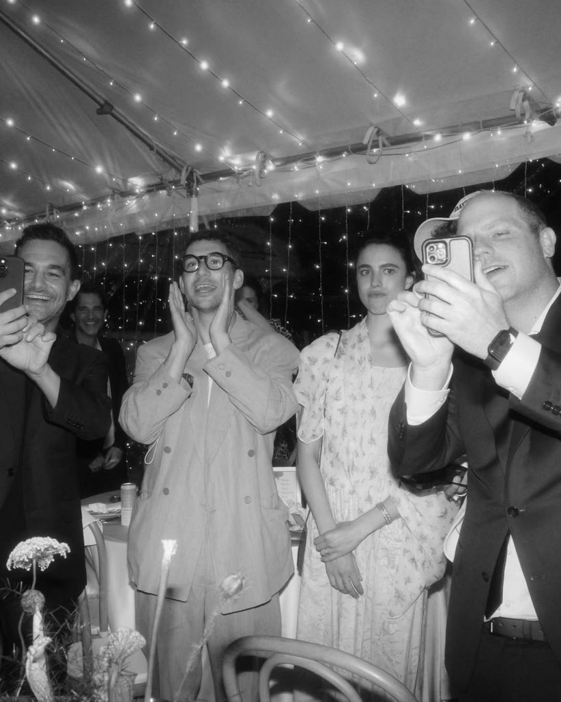 На черно-белых снимках запечатлены трогательные моменты торжества Ланы Дель Рей и Джереми Дюфрена: молодожены кормят друг друга свадебным тортом, танцуют с гостями и позируют, глядя в объектив камеры.