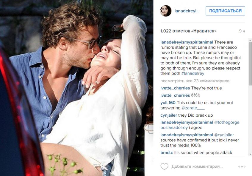 Пока что певица и режиссер не дали комментариев по этому поводу. Однако источники напоминают, что в последнее время у пары были серьезные проблемы во взаимоотношениях. Очевидцы не раз сообщали о том, что видели, как Лана и Франческо ссорятся.