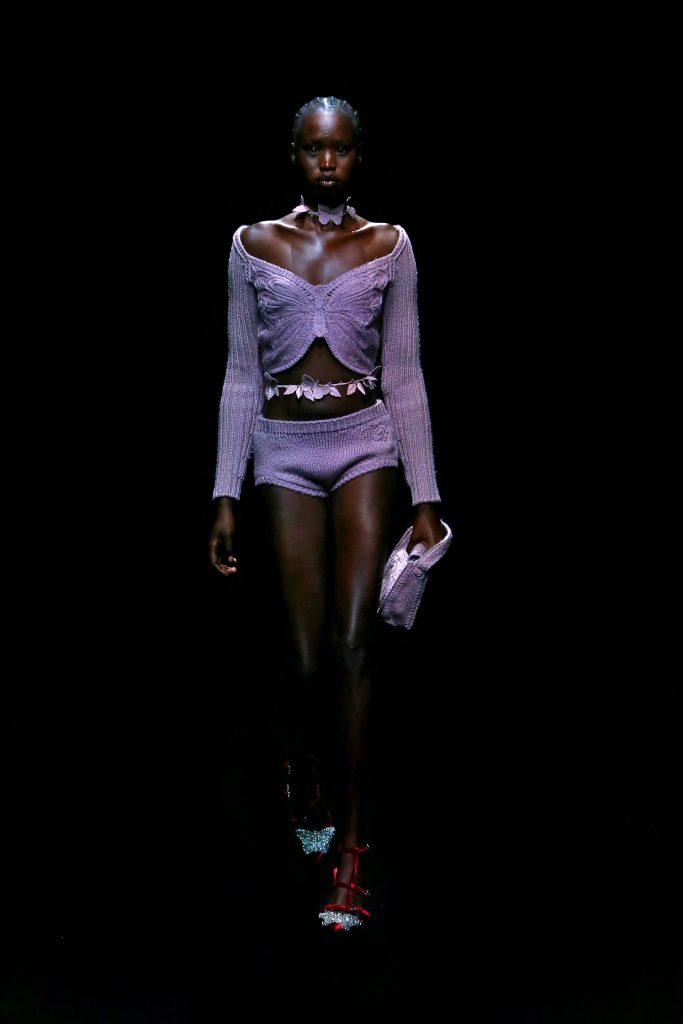 Как бы мы не любили зеленый, пора признать, что в 2022 году место самого популярного цвета займет лавандовый. Он завоевал коллекции мировых брендов еще осенью этого года. Все благодаря показам Salvatore Ferragamo, MSGM и Marni, на которых модели одна за другой появлялись в лавандовых аутфитах (от полупрозрачного платья до летящей юбки). Оттенок возглавил и подиум осенне-зимней коллекции Blumarine: трикотажное платье и меховая сумка сразу же стали объектами желания всех it-girls.