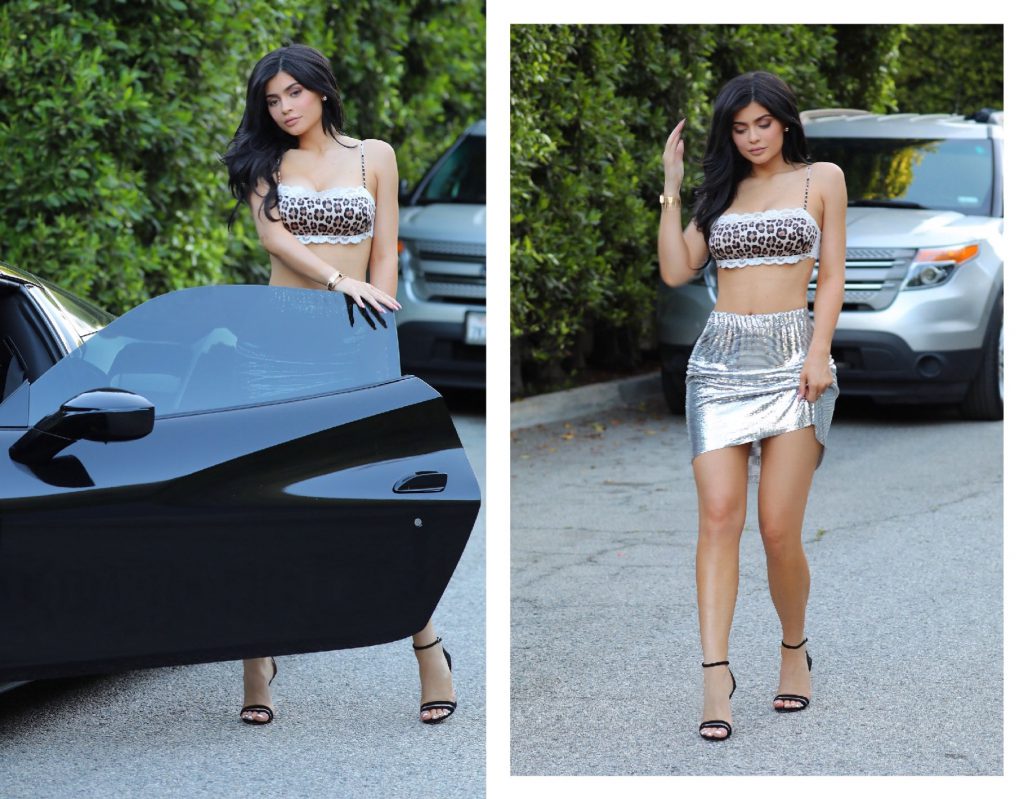 Но последний выход одной из сестер Кардашьян нас шокировал! И это она создает модные вещи? Кайли вышла в трикотажном леопардовом топе с кружевами и в серебристой мини-юбке.
